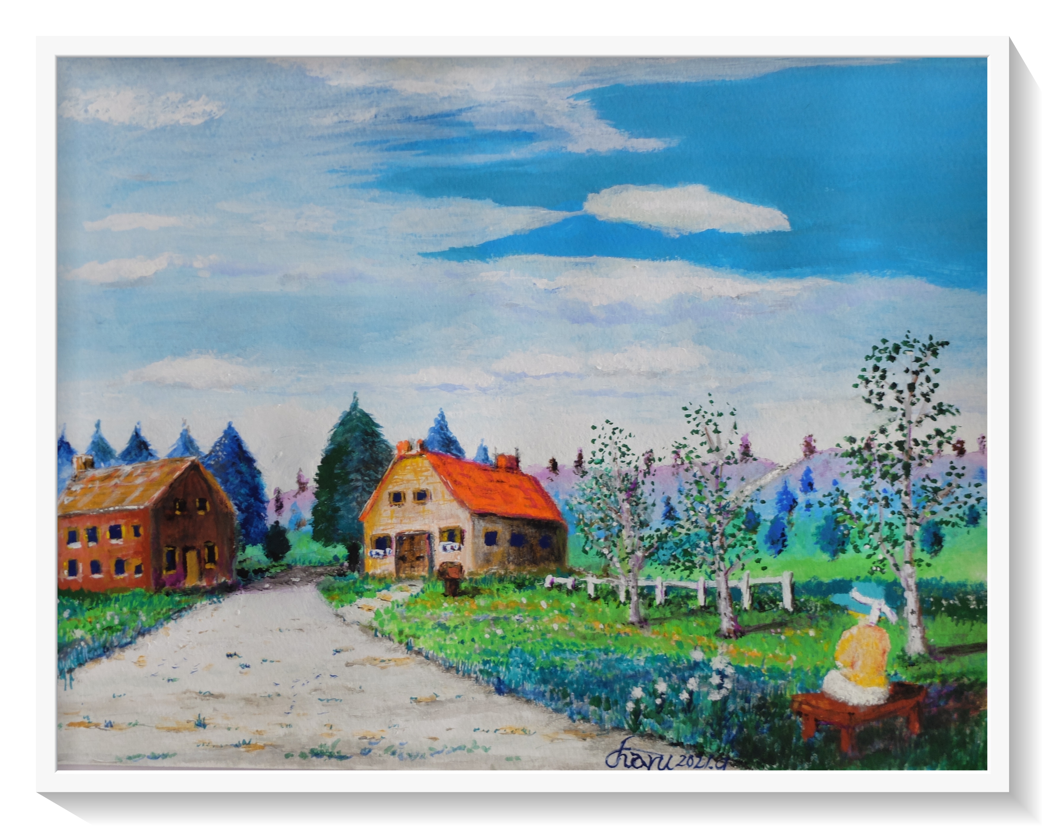 60歳で定年退職をしてから、アクリル画を描きはじめました。誰にも描き方などを習ったことはなく、まったくの自己流です。そして本当にゆっくりのペースで少しずつしか描けません。ですが、ちょっと誰かに見てもらいたいな、という思いもこの頃出てきました。2022年11月には、浜松市のとある喫茶店で12の作品を店内に展示したこともありました。